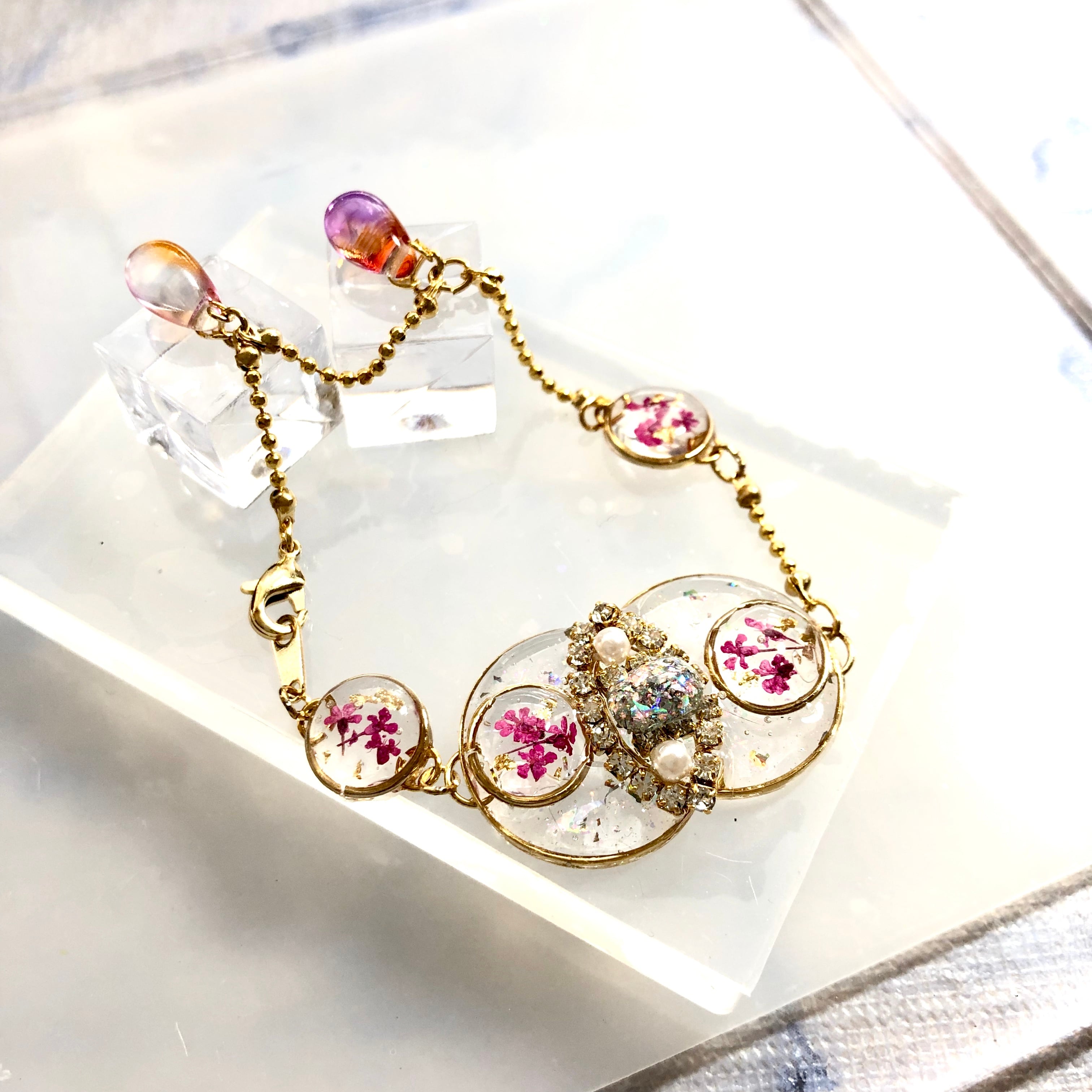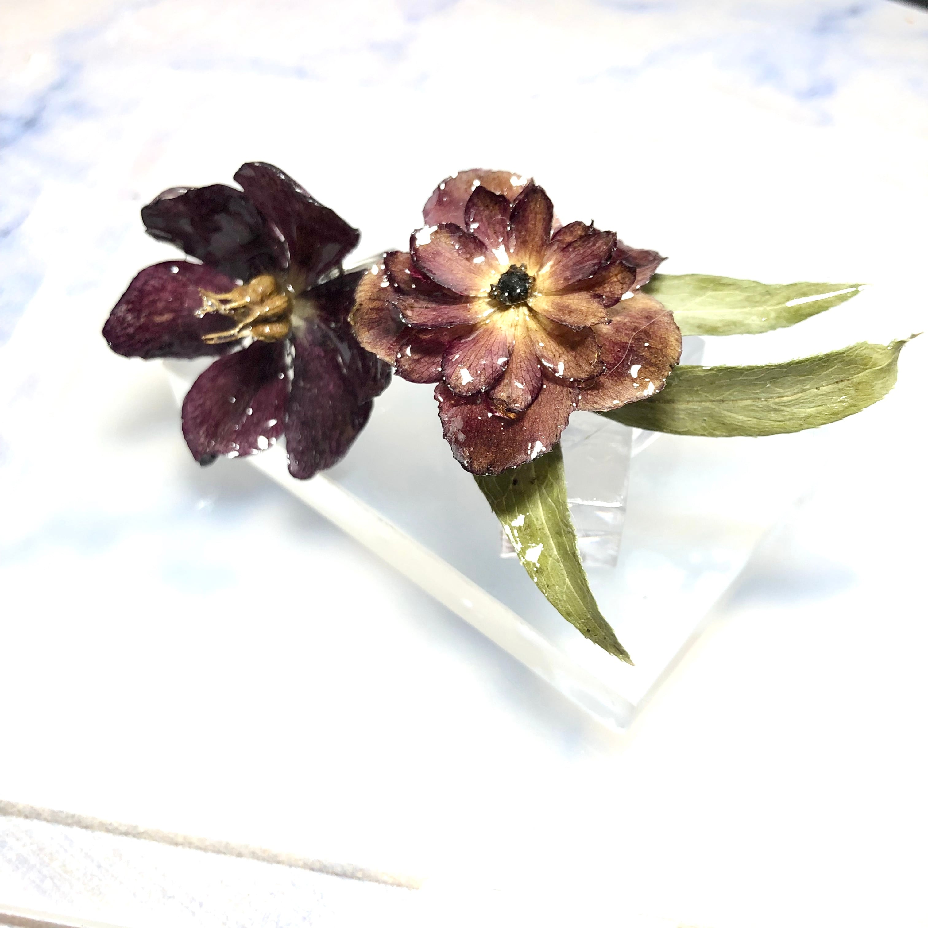 作品は主に庭に咲く花をドライフラワーにしてパーツに使用します